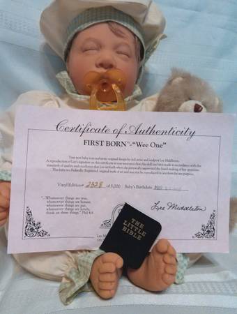 This doll, with too many others, has been sitting in her box for about 28 years as I hoped for a granddaughter to come along and had no room to display them. Finally got the granddaughter but she lives overseas, so time to find them all good homes.