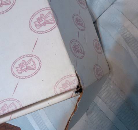 The box is discolored on end with old label glue. Small tears on corners of insert.