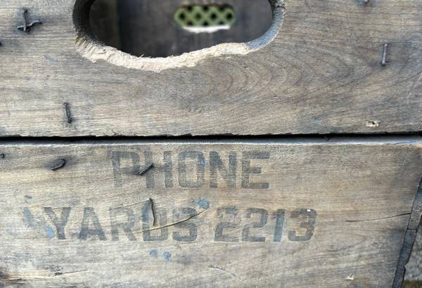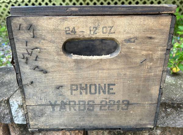 The sides are also interesting, though, designating that the crate holds 24 12-ounce bottles and the company phone number, with only four digits (YARDS (YA)-2219.