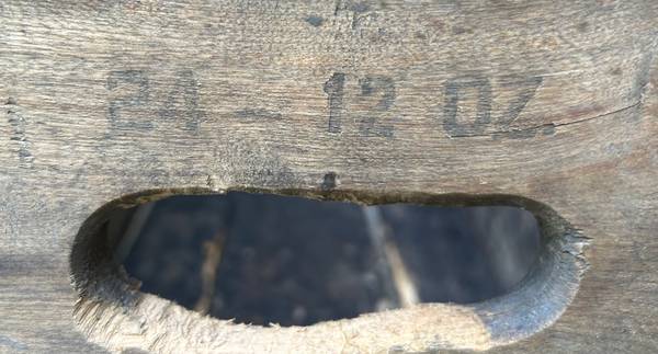 As you can see from the photos, the sides have all the original paint. The long sides have a separation where two boards were used. One of the short sides looks like it was used for staple gun practice. Generally, the graphics aren’t affected.