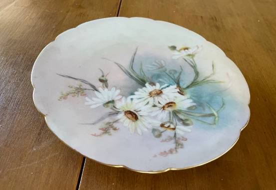 One remaining antique French plate. French T & V Limoges 7" plate ~ daisies. Gold border. Rare and unique.