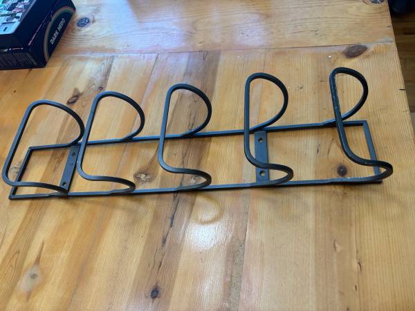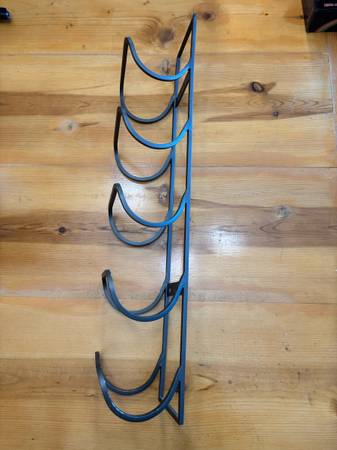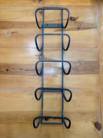 This dark grey metal wine rack is perfect for displaying 5 bottles of wine on your wall.