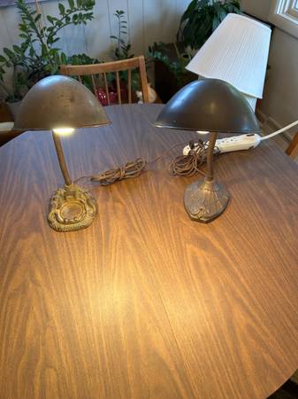Two antique gooseneck lamps. One with mermaids, place for matchbook, and ashtray. Fixture changed on one obviously. Both in excellent working order. Asking fifty for both together.