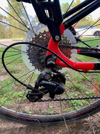 SPECIALIZED DOLCE COMP EVO road bike, women's frame size small. Dusty but in great condition. Comes with lights, tool kit, and rear gear bag. Email or text the number in pic.