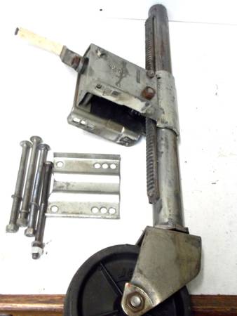 Pivoting and tilting tongue jack for all kinds of trailers Clamps on trailer tongue Pull pin for pivoting parallel to tongue 6" wheel will pivot too. Works good Includes mounting bolts and plates...