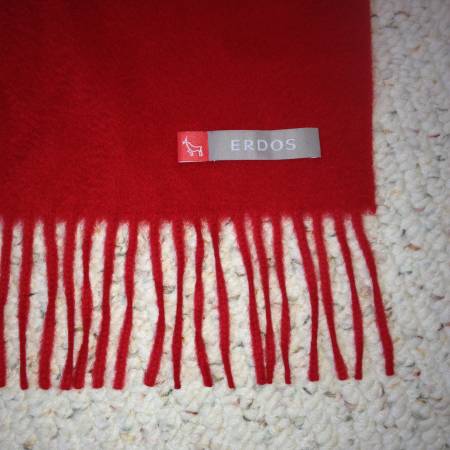 ERDOS Logo Cashmere SCARF ❧ 72 inch Length x 14.5 inch Width ❧ Color: Solid Red ❧ Features: with Braided Fringe on Both Ends ✤ From smoke-free and pet-free home