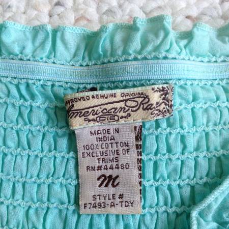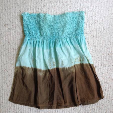 American Rag® Women's sz M Strapless ❧ Teal Mocha tie-dye ❧ 28 inch Bust (across chest at underarm) x 20 inch Top Length ❧ 100% Cotton ❧ Hand wash Cold, Seperately; Line Dry only ❧ Casual Boho...