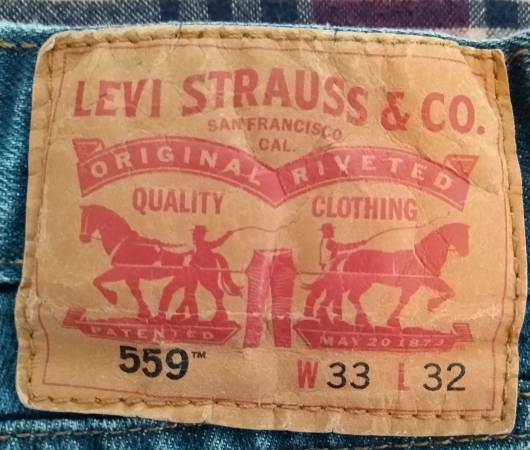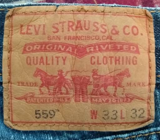 Men's 33 waist Levi's 559. Lengths are 30 and 32. Used very good condition. Four pair available at $20 each.