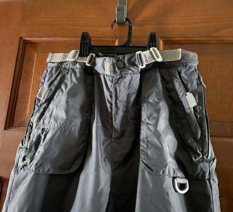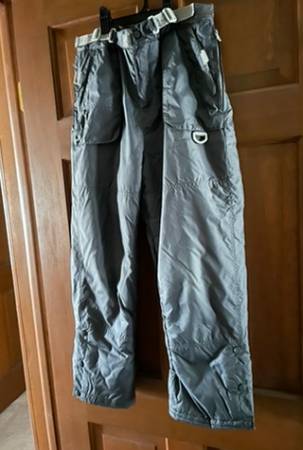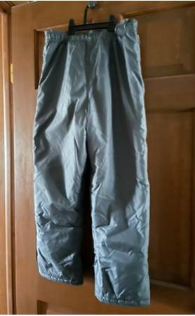 Athletech brand gender neutral snow pants. Gray. 3 pockets and key ring.. Zips to access inside pants. Adjustable waistband. Snaps and elastic at the ankle cuff. From pet- and smoke-free home.