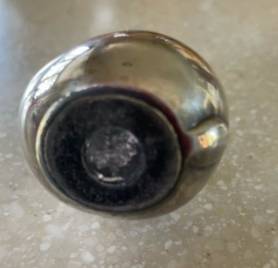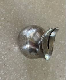 8.5 oz, 2” Wide and tall. Swedish Gunnar Cyren artist/silversmith.