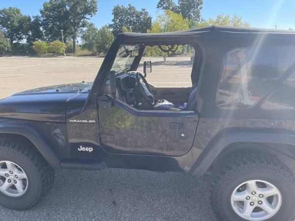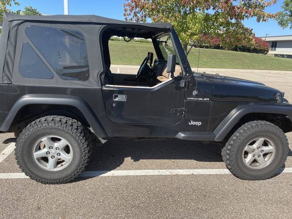 1999 Jeep Wrangler Sport, 2 door, 2.5 L, 4 cylinder, new alternator, removable 1/2 door windows, LED headlights, LED fog lights, black exterior, tan interior, automatic, 165K miles, minimal rust!