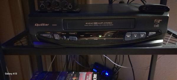 Quasar,stereo,VCR, with remote,head cleaning tape,several VHS, tapes,all cables to connect to your tv. MINT CONDITION....A steal at $35... works perfectly with great audio and video..