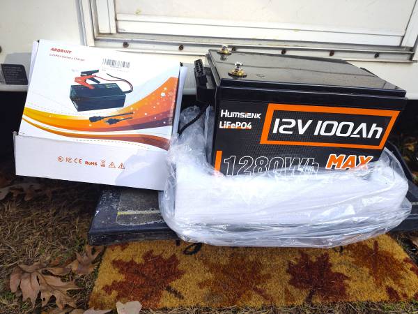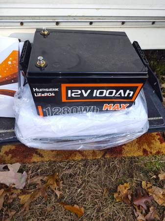 Lithium ion battery 100 AH and charger. Brand new never used.