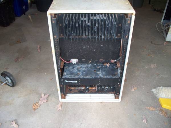 We have two and maybe 3 Motorola repeaters two-way radios. They are 150 MHZ and came from the FBI radio system. At this time, I did not power them up. I am sure they would be great for a Ham system. Look at all the pictures please. Sold for pickup in Muskegon. There is 4 cabinets total, they will fit in a pickup truck.