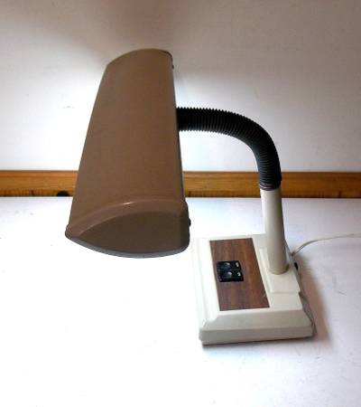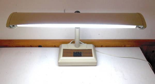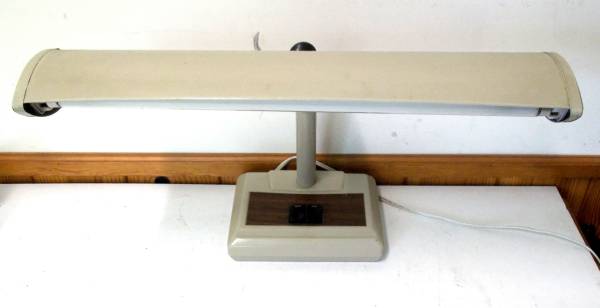 Desk lamp is 13" high, 18" long Double florescent bulb Located in southwest Portage, MI No shipping