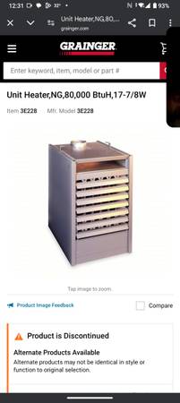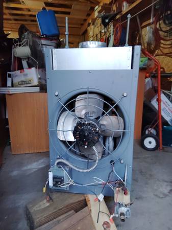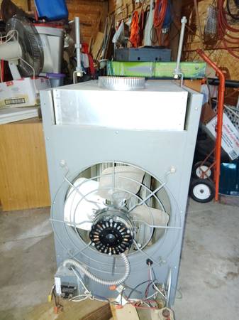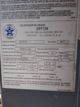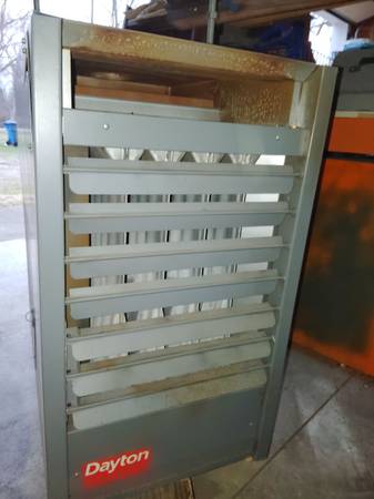 New DAYTON heating units (with only 2% more efficiency) similar to this one sell for around $1,700.00 (plus delivery); but I was only asking $1,500.00 o.b.o. for this barely used unit, and I lowered the price again, so the price is set in stone and is non-negotiable. My dad bought this and unfortunately he passed away from cancer before we could get this up and running.
