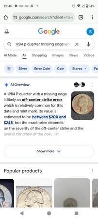 Rare 1984 filled in p quarter, the errors on this quarter is what makes it so much, good condition overall 120 is a great deal for a collector if ur looking the Google price is 200$ - 275$. So 120$ is for sure fair price . Let me know thanks show contact info