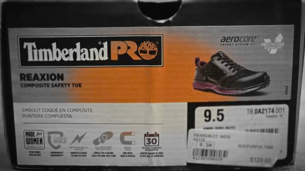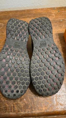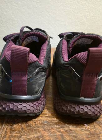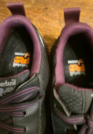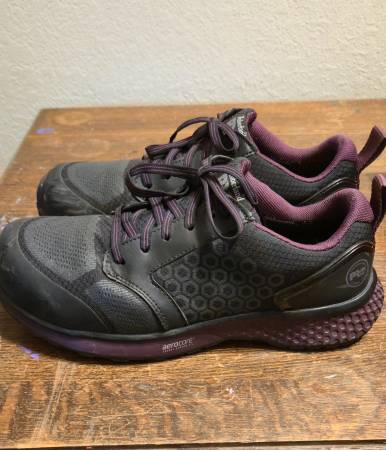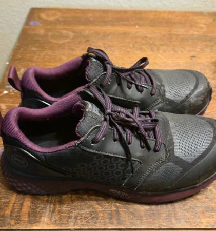 Womens size 9.5. Purple, grey, and black. Used about a month in a warehouse. Some scrapes on toes and heels, but bottom tread is excellent and so is the interiors of the shoes. Bought at Ocun Brothers for $112, asking $15.
