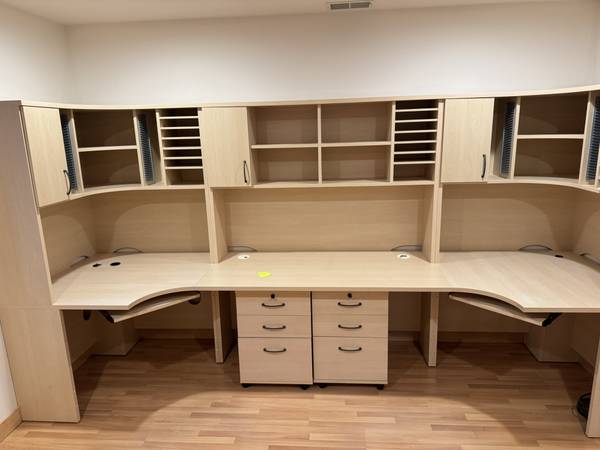 Tvilum-Scanbirk two person work station with file cabinets. 139 x 40 x 71. Great for home office. Excellent like new condition. We are changing this room back to a bedroom and need to sell.