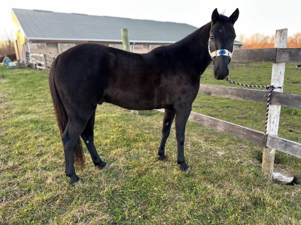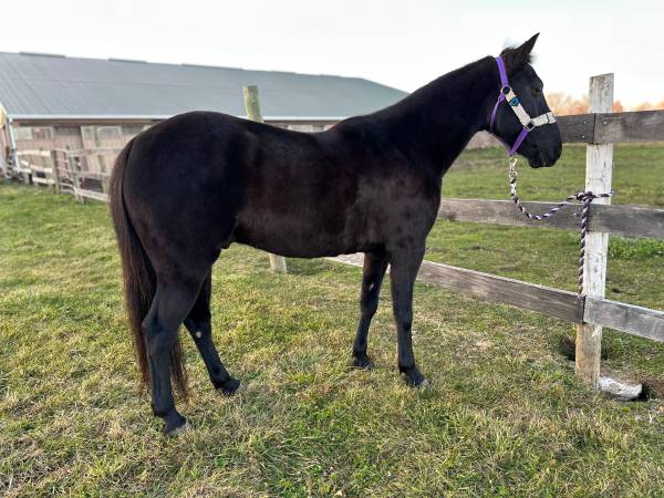 5 yr old quarter horse cross gelding , 14 hands . Very sweet and willing . Rides outside alone or in a group . Not flighty , hasn’t had any buck or silliness. Not fancy broke , just backyard gentle broke . Will ride bareback . Will cross the Bridge and try anything you ask . Would be a good trail mount or all around 4-h project .
