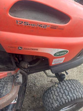 Scotts 42in cut riding mower. 17.5 Hp Fires up runs. Cutting deck Has hole. Body is solid still has potential. Battery not excluded. Asking $250 o b o
