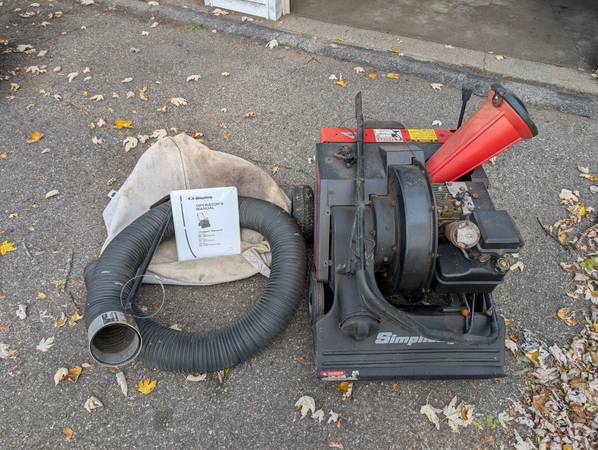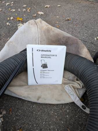 Simplicity Chipper vacuum. Handy man special. Leaks oil. Was running last fall. With leaf bag, hose and manual. two six 9 3 seven 0 six four 12