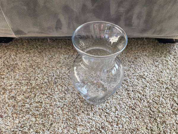 Glass Vase Dimensions: 9" height x 3" width (at widest point)