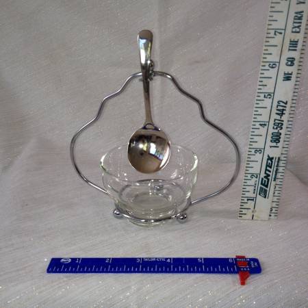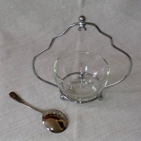 Chrome Plated frame Glass Jam / Candy Serving Glass Dish and Spoon Sweet / Savory Made In England Vintage