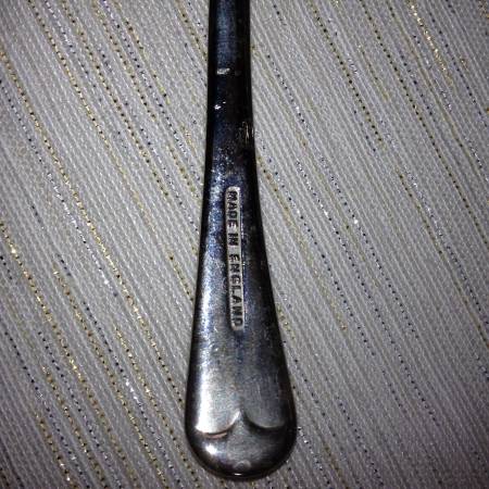Spoon: 5 in. length; stamped "Made in England"