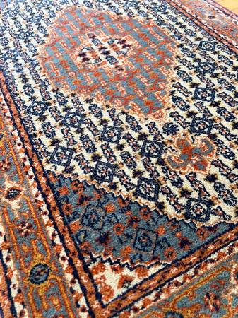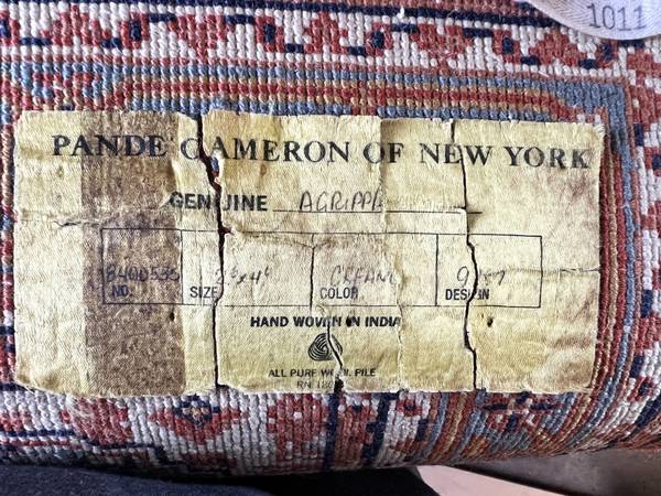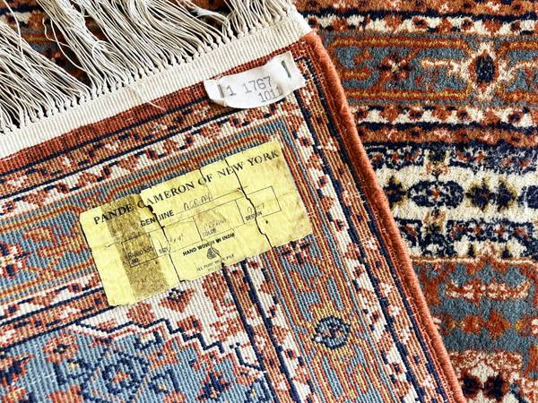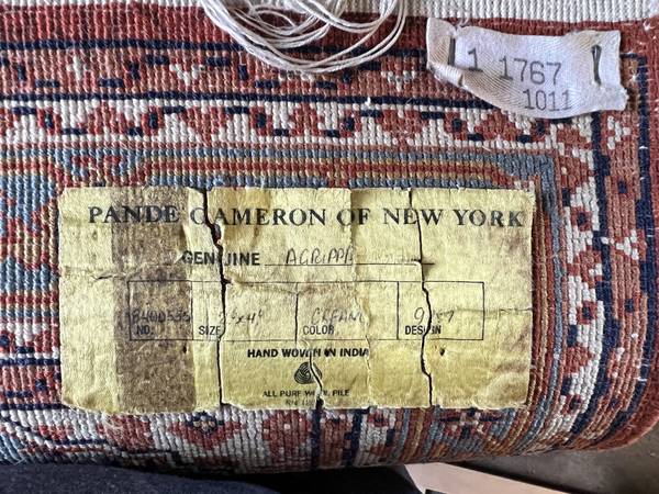 Beautiful vintage Pande Cameron Agrippa Area Rug in very good condition. Original manufacturers tag attached. Colors - Rust, Ivory, Blue/Gray, Navy Cash / Venmo accepted.