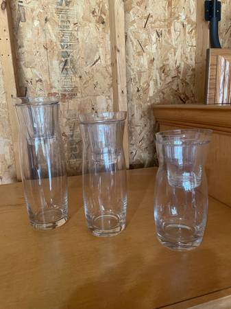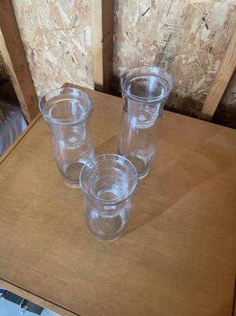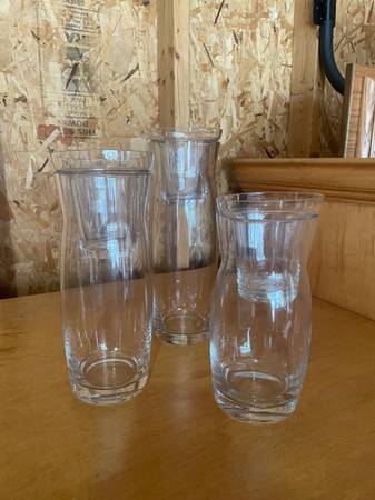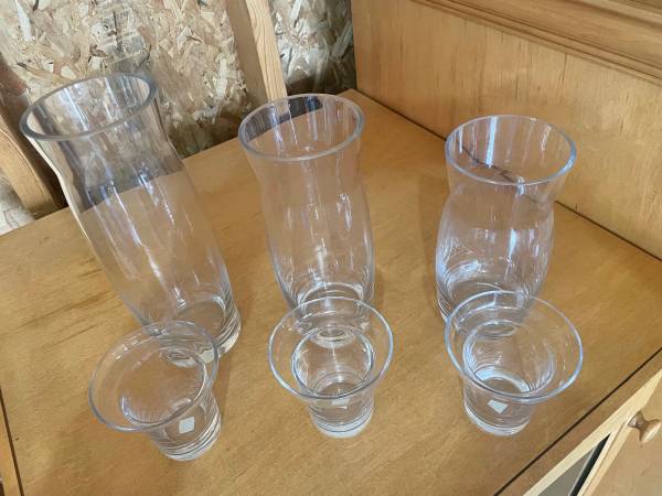 Beautiful trio of clear glass hurricane candle holders, perfect for centerpieces, mantels, or seasonal décor. Can be used with pillar candles, floating candles, or LED candles for a clean, modern look.