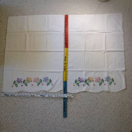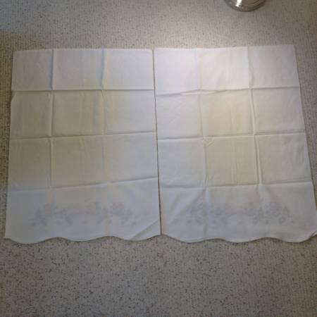 Vintage Pillowcases Matching Pair 2 ◦ Scalloped Rolled-Hem Edge ◦ Hand-Embroidered Cross-stitch Flowers ❧ Fabric: White Cotton, Supple, Smooth, NOT "Thinning" ❧ 20 inch Width x 28 inch Length ❧...