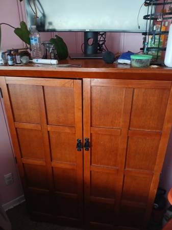 this corner hutch sits out 2ft and 25inches and 54 inches high has 4 drawers at the bottom.