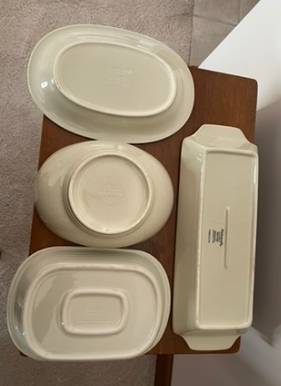 3 serving pieces. Tan and ivory/off white. (Note: long dish has SOLD).