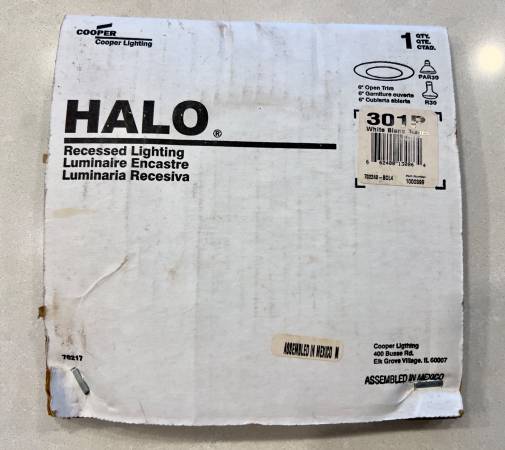 New, unopened 18 white Halo 301P trim for recessed lighting fixtures. Sells at 9.49 each at amazon and Home Depot. Entire lot of 18 at half price. Cash only please. Text me for quickest response. Thank you.