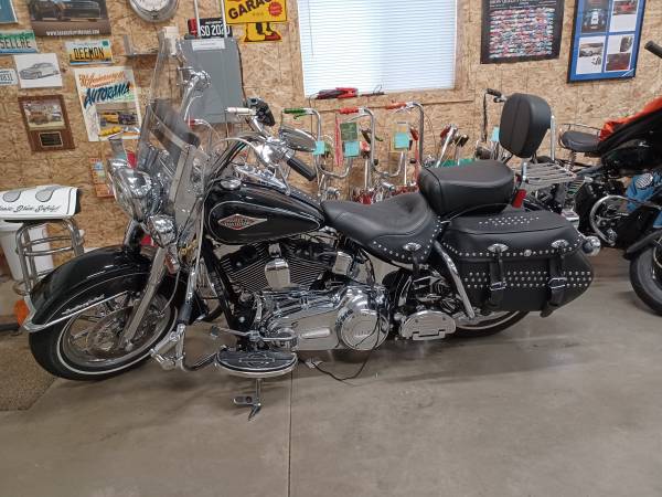2013 Heritage Softail Classic 103" Twincam 6/speed, low miles & not a scratch! $$$Thousands in extra chrome & accessories! Vance and Hines pipes, Almost 30K invested!! Optional chrome brake calipers and center dash plate. Ready to enjoy and it rides strong, sounds great and so smooth too. Always carefully maintained & covered in climate controlled building. Scheduled service by Harley Davidson. I bought it 3 years ago. My friend bought it new in January 2013 at Capitol HD in Lansing, Mi. Absolutely no disappointments! Realistic fussy senior owner/caretaker. Like new Harley for less than 1/2 the price. Why not own a motorcycle as special as this-It needs nothing! Asking $9600/offer/part trade for classic car/truck or antique motorcycle, bike or scooter? I also plan to offer my 2004 Springer Softail & some other vintage cycles/ minibikes on Craigslist. Can deliver or help ship. Call/text 616 9 one five 98 one nine.