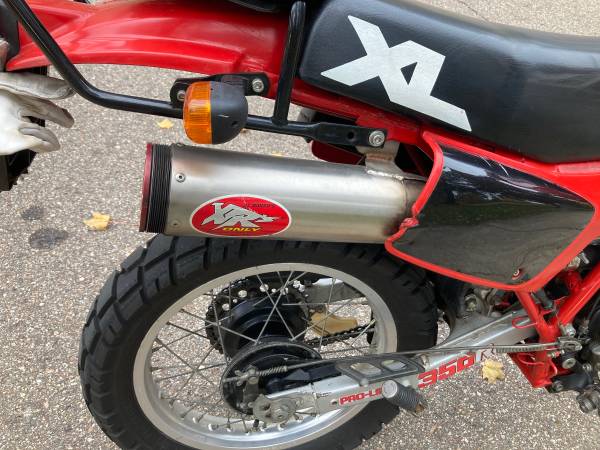 Exhaust header sent to Swaintech for ceramic coating, then sprayed with high temp black paint(left a small ring of ceramic coating at muffler flange to show Swaintechs work. XR350r disc muffler modified to fit XL. (legal as a spark arrestor).