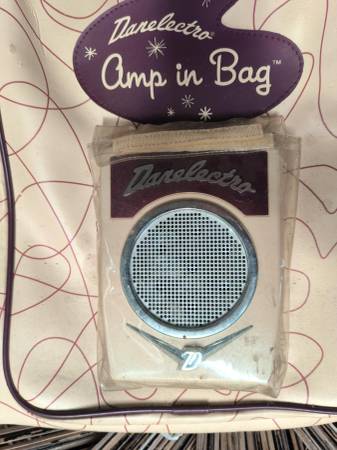 This comes with the very funky Amp In Bag guitar case. The case unfortunately has many small puncture marks from my cat. The amp could use a new battery but does work, in the sort of terrible goofy way it does. Dirty volume, tone and overdrive wheels, so a little noisy. The plastic the amp goes in is a little dirty. Regardless of the condition of the case, it's a pretty fun classic gimmick that isn't so available any longer.