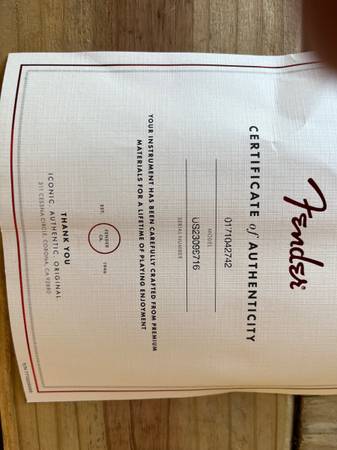 SAVE $550!!!New as a Christmas present December 2024. APT “LIMITED EDITION” included a custom Fender hard shell case . “Yosemite” pick ups, “Classic Gear” tuners, “Vintage” style bridge. THIS IS NOT A THIRD WORLD GUITAR. AUTHENTIC DOCUMENTATION is provided.