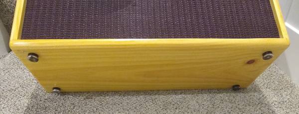 Solid pine 2x10 cab with plywood baffle made by Rawcabs in California (sold on eBay). Selling as an empty cab without speakers. Includes speaker mounting screws, wiring harness, handle, feet, oxblood grill cloth and clear coat finish. The last two photos are screenshots from the Rawcabs website.