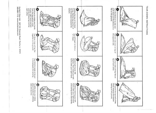 Camo 4 sided popup blind with two windows. Weight about 8-10 pounds with backstraps on the cover for easy portability. Put up or down in seconds. Great for deer, turkey, coyote or just sitting in the woods watching! Windows (2) big enough for use with bow or firearm. If you are quiet, they will walk right up to you. Camo is great pattern for our fall woods. Didn't take a picture with it up but you can see from the directions pagewhat it looks like. Don't hunt anymore so don't need it. Questions, call me and leave a contact number.