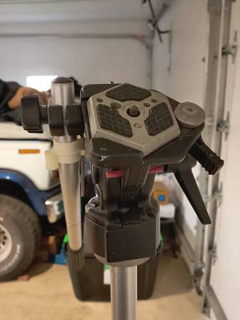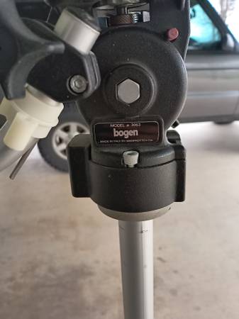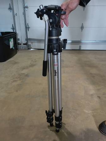 Bogen 3021 Professional Tripod With Bogen 3063 Swivel Head.. Telescopic Legs, Three Different Leg Levels. One Adjuster Is Broke But Still Turns Easy With Pliers. Tripod Stands 54" Tall With Easy Twist Height Adjusters. Bogen 3063 Swivel Head With Shaft Is 26" Tall With Easy Twist Adjusters. Stands 23" Tall All Broke Down.