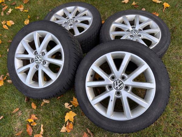 Up for grabs are these Volkswagen Jetta 16" OEM wheels and 205 55/55R16 Mastercraft Glacier-Grip II snow tires. I recently sold my 2011 VW Jetta with some aftermarket wheels, but I kept the winter tires and OEM wheels to sell later. Lugs are included.